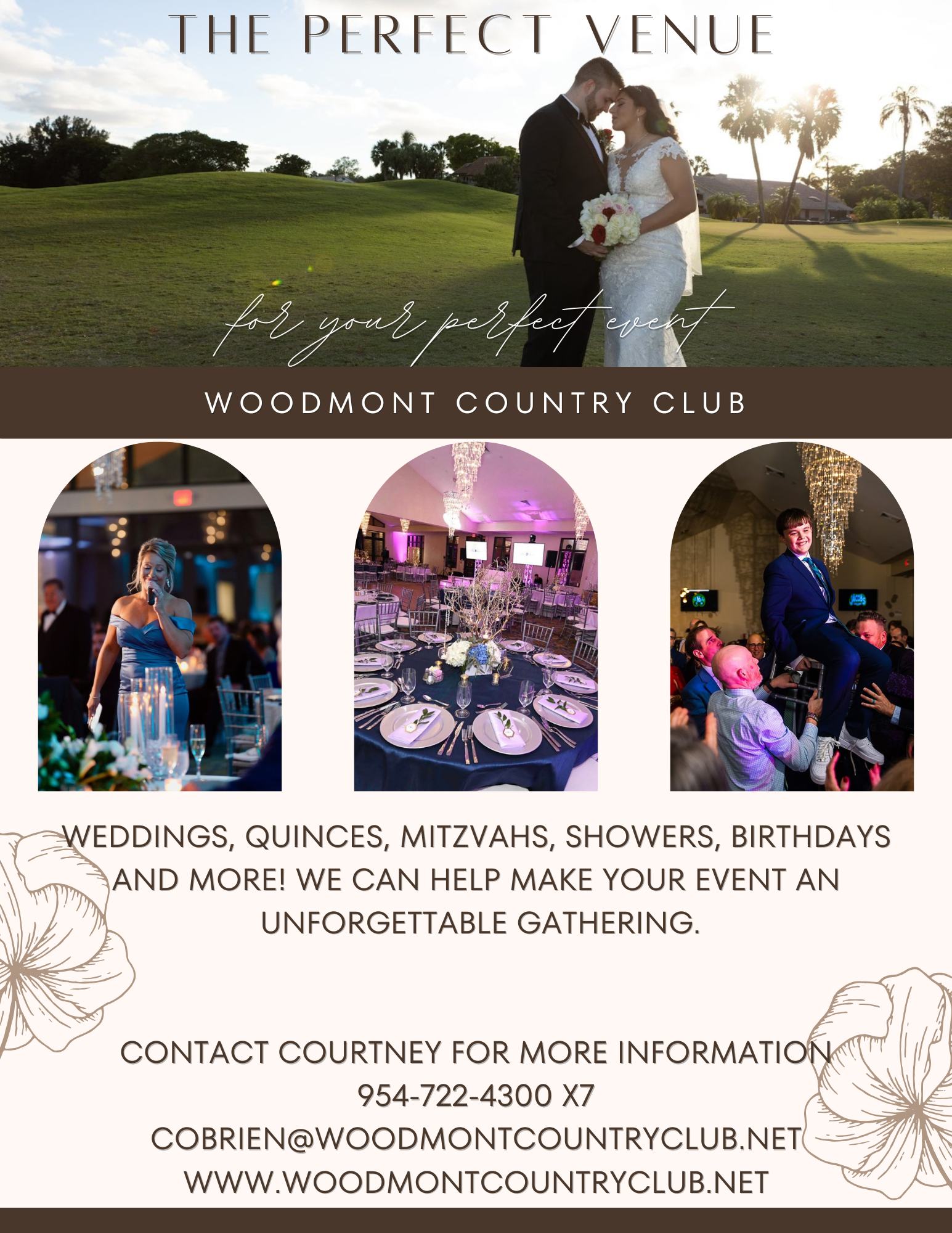 Consider the Woodmont Country Club for a worry-free event experience. We have a professional staff ready to help you with all the details. We have a range of services and partners to ensure your event is a grand success. Contact us and let us help you get the planning underway!
